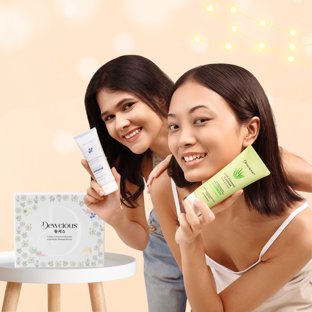 Our Dewcious Diwali Gift Box is a carefully curated diwali hamper combining two of our magnificent Korean face cleansers- Aloe Foaming Cleanser + Blueberry Foaming Cleanser, a plush spa headband, and elegant gift packaging. Ready to impress family, friends, or employees.